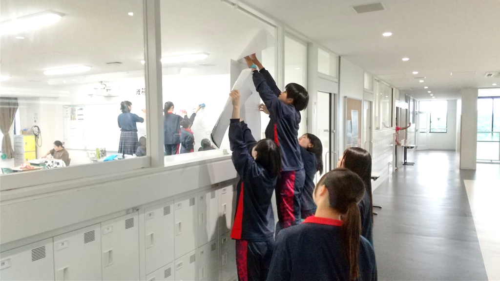 生徒たちは楽しそうに協力して準備を進めており、絵やアート・装飾品を制作しています。