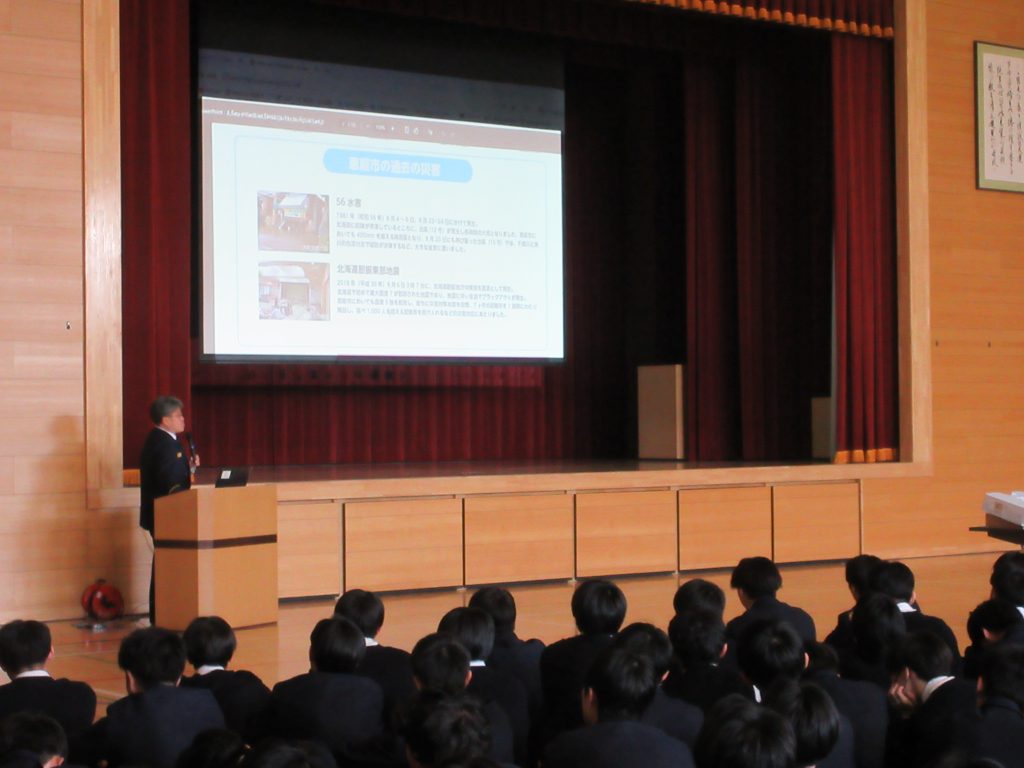 11/28(金)、令和7年度第2回避難訓練を実施しました。 今回は初めて防火扉や防火シャッターを閉鎖した中で訓練を行いましたが、生徒たちは慌てることなく、落ち着いて行動できていました。 また、訓練後には恵庭市消防本部予防課の方による防災講習会を行い、さまざまな災害に対する大切なお話をいただきました。ありがとうございました。 今回の内容を時々振り返り、一人一人が災害への意識をもって、日々生活してほしいと思います。